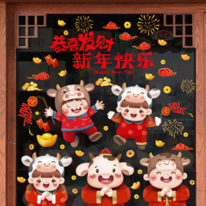元旦新年装饰墙贴春节生肖牛年贴画过年商场门贴橱窗玻...