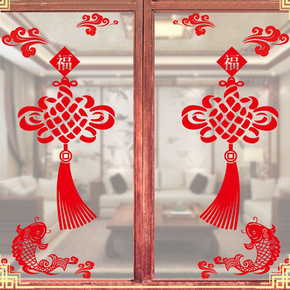 XL611仲兰 新年春节中国结橱窗玻璃客厅电视背景...