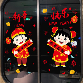 XL688新年娃娃喜庆墙贴客厅卧室橱窗玻璃贴画第三...