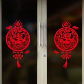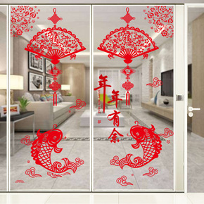 新款春节连年有余福字大红贴纸玻璃橱窗门美化装饰贴 ...
