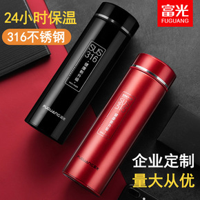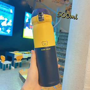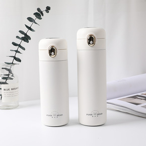 朋克熊简约清新316保温杯弹跳杯带温显 新品创意学...