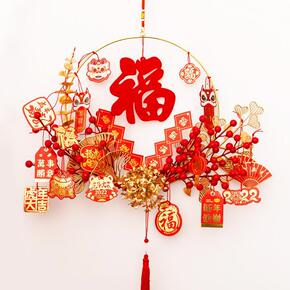 新年门挂装饰挂件福字花环diy 过年家用春节挂饰元...