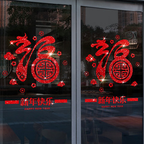 2022虎年新年装饰玻璃贴纸春节过年布置窗户福字门...
