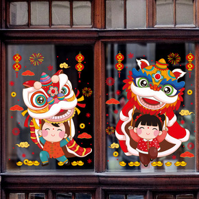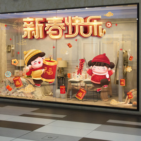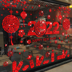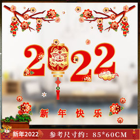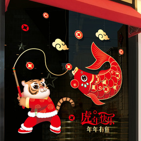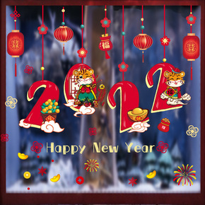 2022虎年新年玻璃贴纸橱窗贴春节过年装饰门贴窗花...