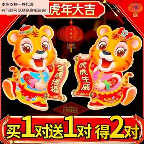 新春2022虎年春节贴新年装饰品过年布置3d立体卡...