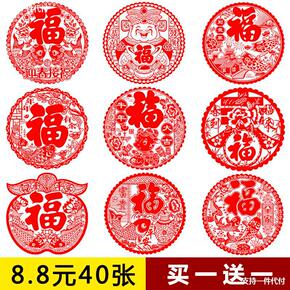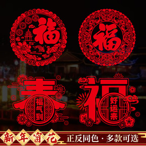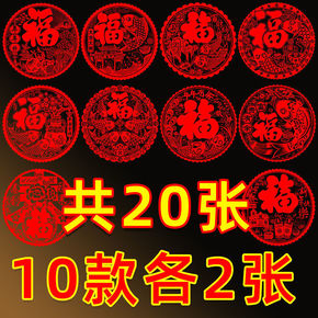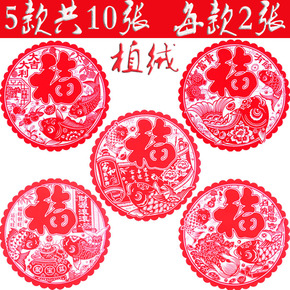 10张植绒福字窗花静电贴门贴玻璃贴膜贴剪纸装饰创意...