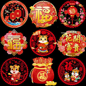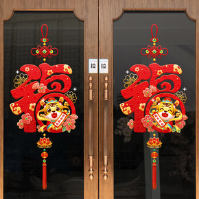 新年装饰贴纸玻璃贴画2022虎年春节福字过年中国结...