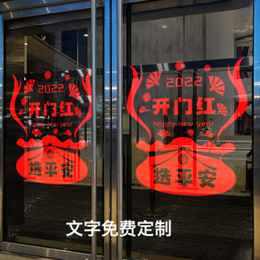 新年玻璃门贴2022虎年春节装饰推拉门贴画过年布置...