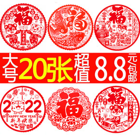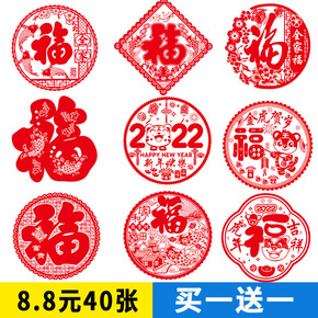 2022虎年福字门贴剪纸窗花玻璃贴纸新年春节乔迁新...