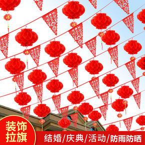 彩旗串旗 婚礼院子装饰灯笼小串旗婚庆布置喜字拉花结...