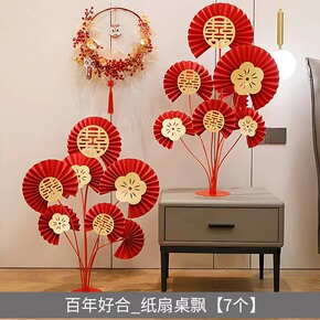 婚庆结婚新房布置婚房装饰卧室客厅红色纸扇拉花婚庆用...