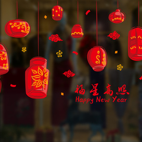 新年快乐贴画2022春节装饰窗花店铺橱窗玻璃贴过年...
