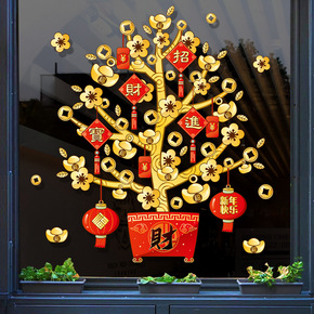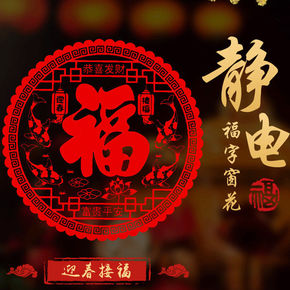 新年装饰窗花静电贴落地窗元宝春节福字招财玻璃贴20...
