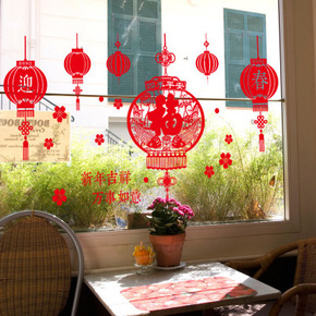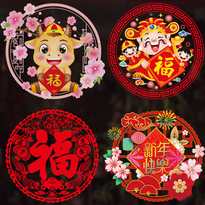 虎年春节窗花新年玻璃贴装饰场景布置静电贴过年福字贴...