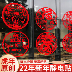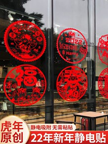 2022虎年门贴新年装饰品静电贴剪纸窗花玻璃贴新春...