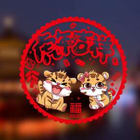 2022虎年剪纸窗花静电贴玻璃贴墙贴门贴纸新年春节...