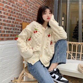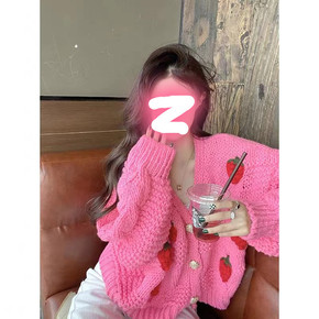 重工草莓立体花朵开衫2022早秋新款慵懒风针织衫减...