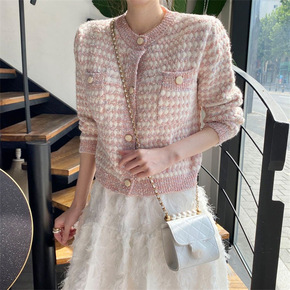 2022早春新款慵懒小香风毛衣女娃娃领修身针织开衫...