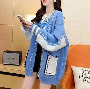 慵懒风毛衣女加厚2022新款秋冬复古宽松外穿长袖针...