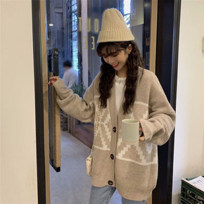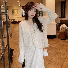 法式复古日系宽松慵懒风毛衣外套女2022新款洋气减...
