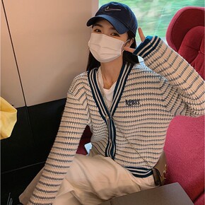 针织衫女2022年秋季新款外穿条纹毛衣开衫女韩版女...