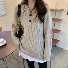 2022韩版气质通勤针织衫斜扣开叉毛衣秋冬新款百搭...