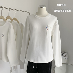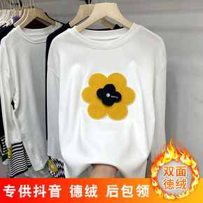 官图双面德绒2021冬季新款圆领宽松图案长袖打底衫...