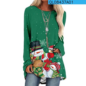 2021秋冬装时尚圆领印花妈妈装新款气质长袖t恤女...