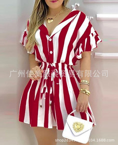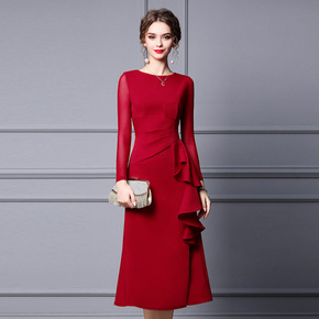 2021新款秋季欧美女装亚马逊eBay修腰波点大码...