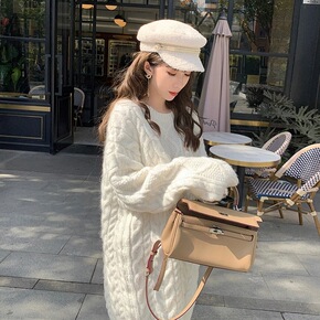 时尚麻花毛衣女中长款秋冬宽松慵懒风外穿加厚套头针织...