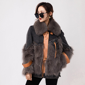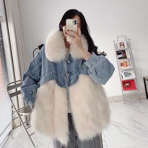 轻奢感牛仔派克服2021年冬季新款中长款时尚狐狸毛...