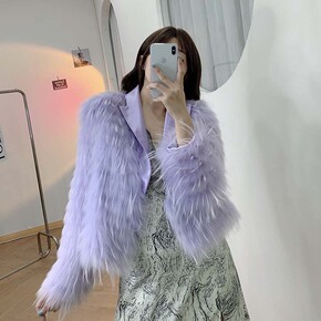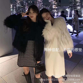 网红同款貉子毛车条流苏皮草外套女短款2021秋冬海...