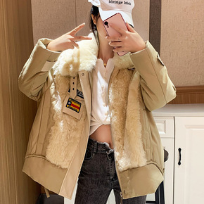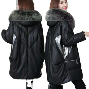 皮衣羽绒棉服2021冬新款宽松绵羊皮仿狐狸毛领中长...