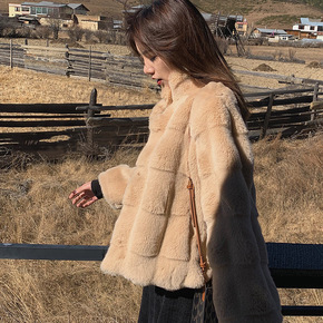 2021年新款颗粒羊毛全羊毛中长款皮草复合皮毛一体...