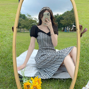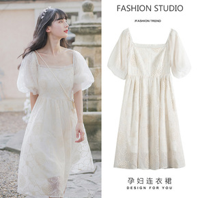 包邮2022新款连衣裙洋气法式复古甜美减龄蕾丝拼接...