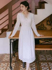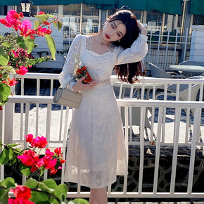 好品质2022新款女春装气质仙女裙法式蕾丝长袖连衣...