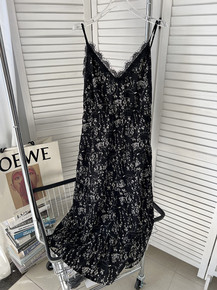 秋冬chic蕾丝边拼接碎花吊带裙女2021秋季新款...