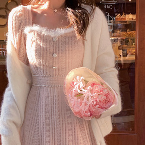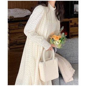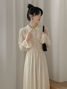 春秋季新款法式长款裙子收腰显瘦白色加绒蕾丝气质打底...
