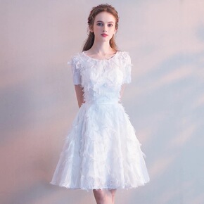 晚礼服女新款平时可穿短款白色学生宴会气质小个子显瘦...