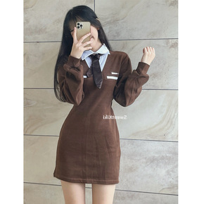 回到校园|美式复古辣妹学院风衬衫领带收腰连衣裙新款...