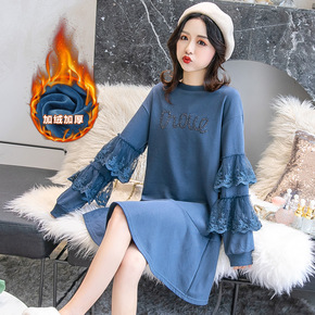大码女装2022秋冬新款宽松加绒加厚蕾丝拼接长袖鱼...