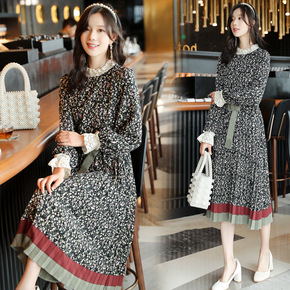 碎花连衣裙春季新款韩版蕾丝拼接印花百褶裙显瘦收腰打...