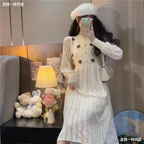 2021新款蕾丝改良旗袍连衣裙女秋季日系可爱开叉碎...
