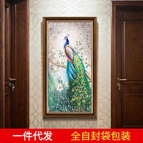 2020年新款5d钻石画满钻客厅玄关竖版富贵孔雀点...