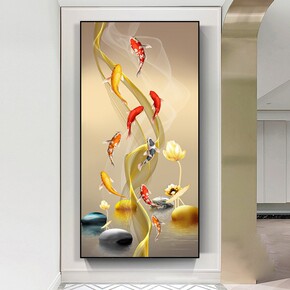 5d钻石画满钻新款客厅入户玄关金色荷花九鱼图点贴钻...