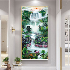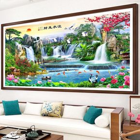 2022新款钻石画满钻客厅十字绣流水生财钻石绣迎客...