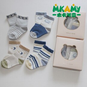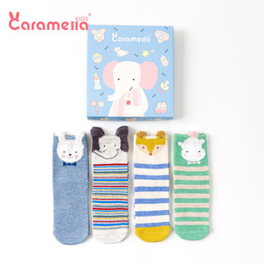Caramella秋冬儿童礼盒袜 4双装彩色卡通棉...