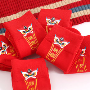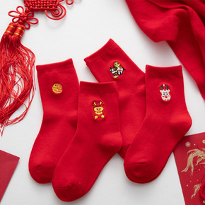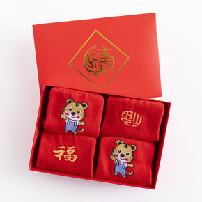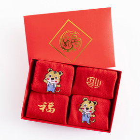 儿童虎年礼盒装红袜子男童女童中筒袜本命年红色生肖袜...