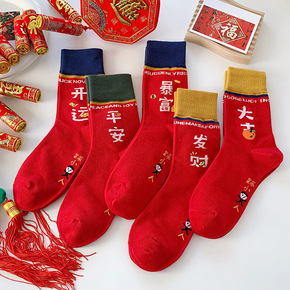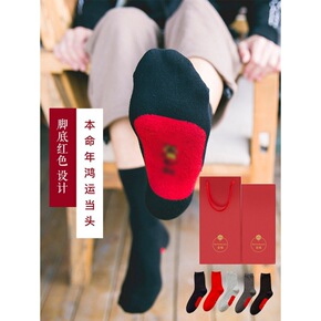 虎年袜本命年红袜子男士中筒棉质秋冬加厚属虎情侣大红...