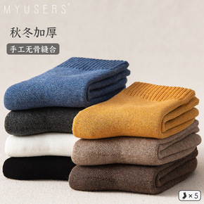 加厚加绒袜子女秋冬季纯棉无骨缝合高腰纯色毛圈中筒袜...